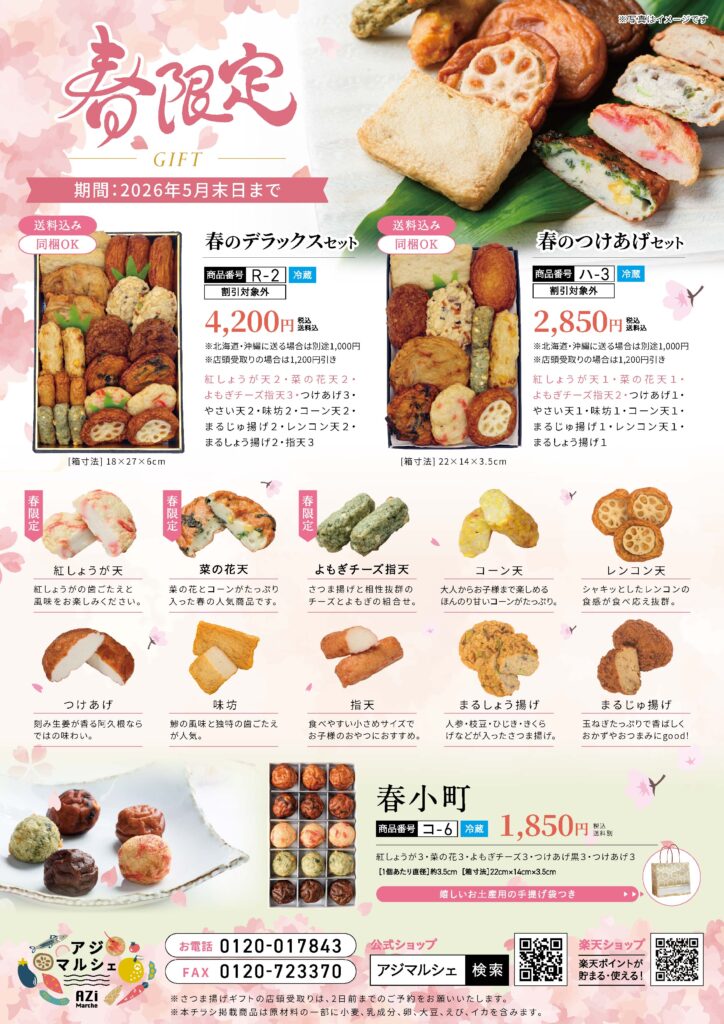 HOMEお知らせ一覧【アジマルシェ】春限定さつま揚げ詰合せギフト販売スタート